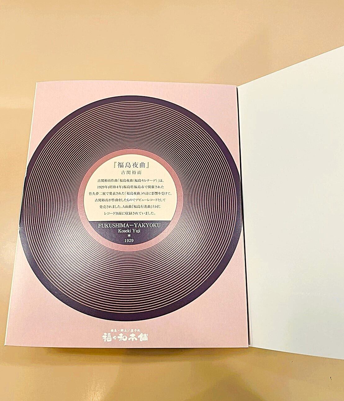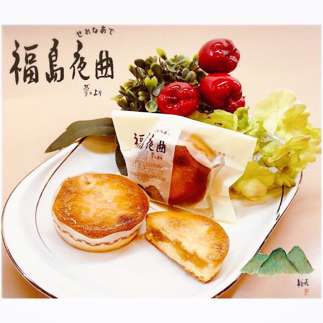 古関裕而作曲「福島行進曲」のB面に収録された竹久夢二作詞の「福島夜曲」をお菓子で表現しました。シロップ漬けしたリンゴを包んだ当店人気のソフトガレットです。
